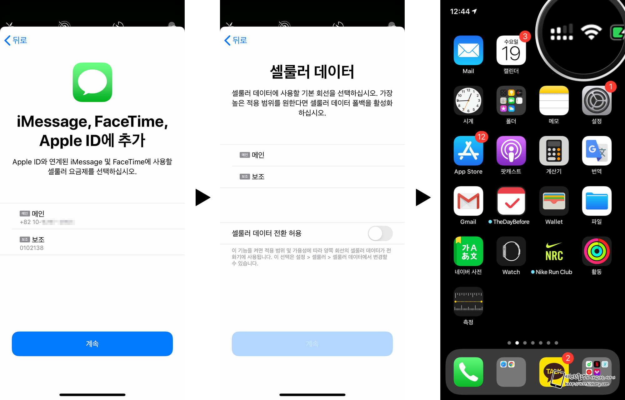 계속 > 계속 > 계속 을 누르다 보면 설정이 끝이나고 오른쪽 위 안테나를 보면