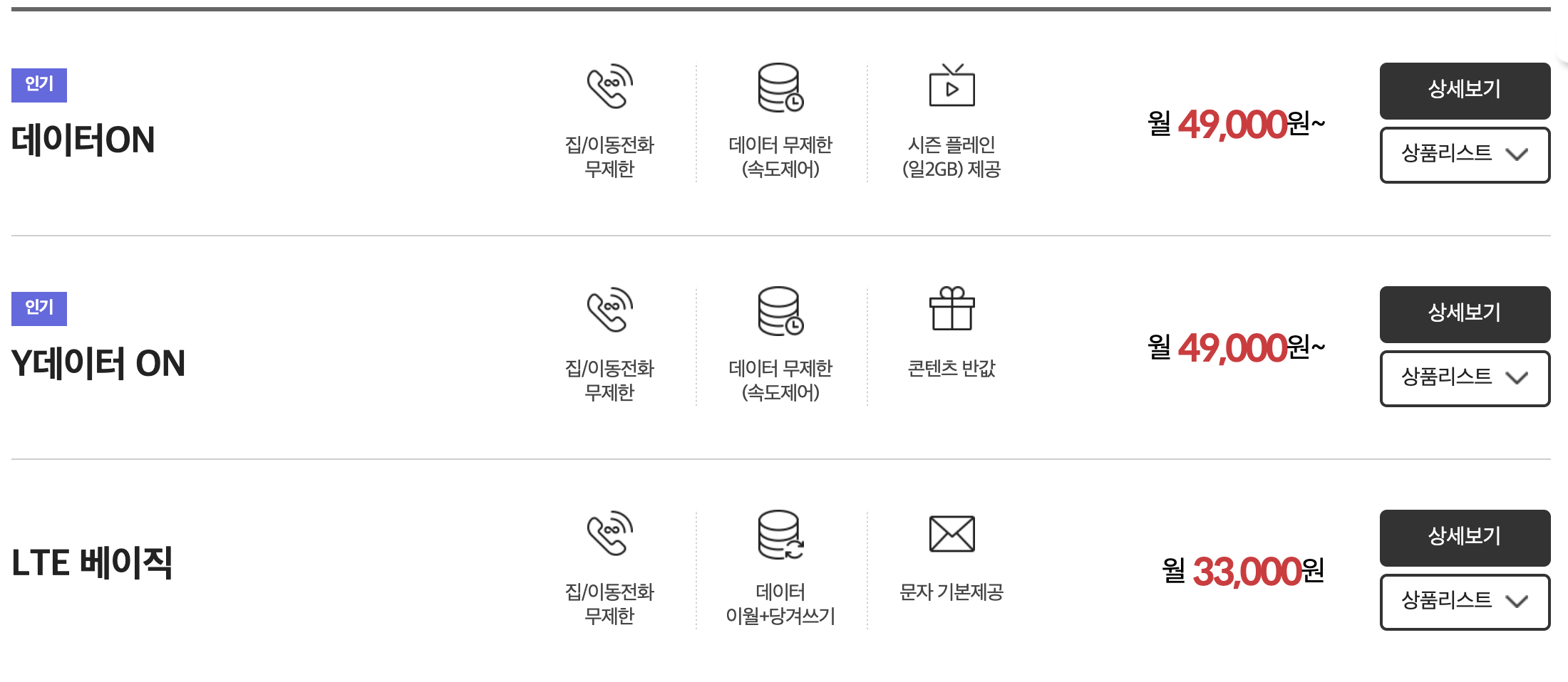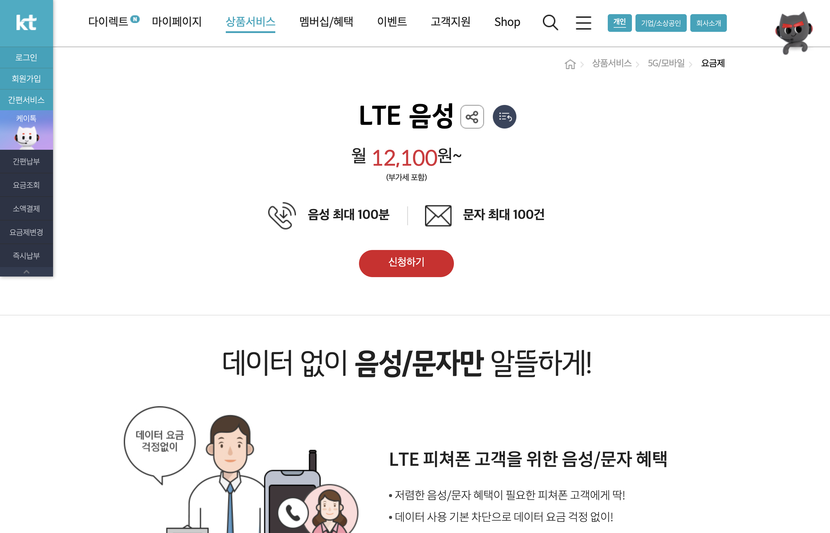 위 요금제는 제가 현재 메인으로 사용중인 KT 요금제 입니다.